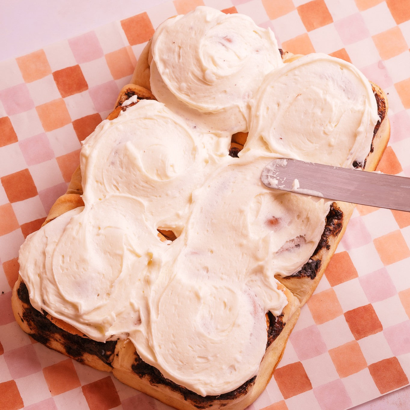 The dough is rolled with a classic cinnamon, sugar and butter filling, enriched with black cocoa powder, the same cocoa used to create Oreos® iconic flavour and colour. We then fold crushed Oreos® into the bun for an extra hit of chocolatey crunch. Baked until perfectly pillowy, then topped with a generous swirl of smooth cream cheese frosting and a final scattering of Oreo® crumbs on top.